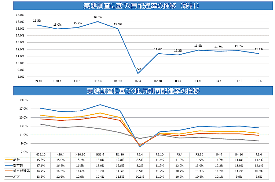 国交省が実施している「宅配便再配達実態調査」は、宅配事業者の側から定量的に調査を行うことにより、宅配便の再配達状況の時系列変化を把握。宅配ボックスの普及促進など多様な受け取り機会の提供など取り組み結果を明らかにするための、基礎資料を得るために実施している。