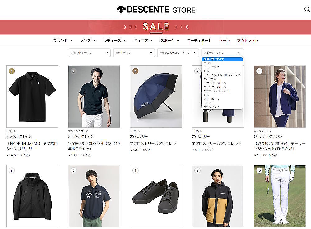 デサントジャパンが手がける公式通販サイト「DESCENTE STORE オンライン」の特徴は、デサントジャパンが展開する9ブランドの全カテゴリー商品を取り扱っていること。品番数はスポーツブランドのなかでもとりわけ豊富で、約5000品番にものぼる。卸先との関係性を重視しながらも、自社ECでの購買体験を楽しんでもらうため、現在は直営店限定商品のラインアップを強化している。