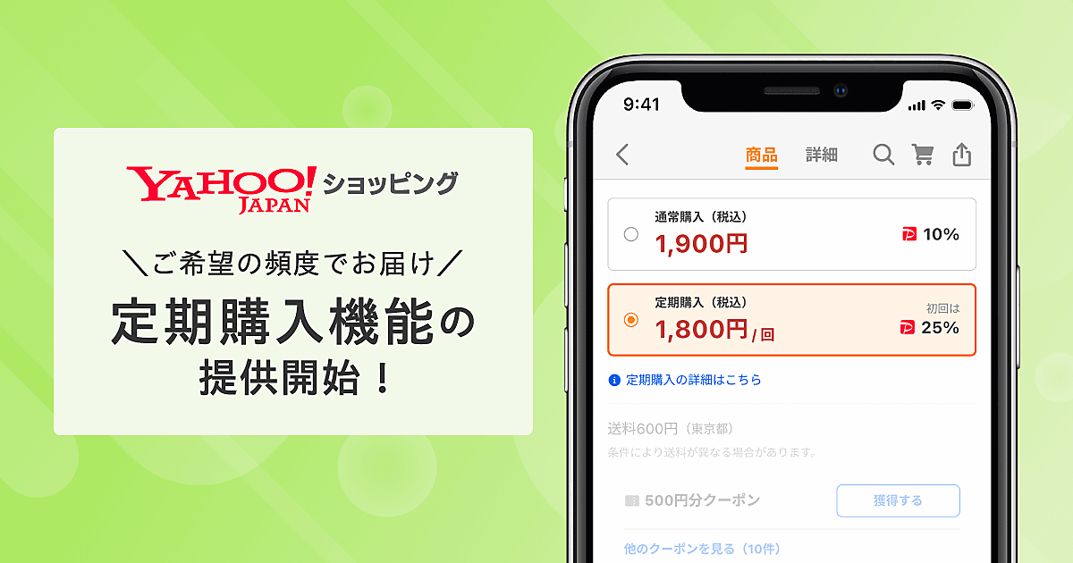 ヤフーは、ユーザーが指定した頻度にあわせて商品を定期的に届ける定期購入機能を「Yahoo!ショッピング」に実装した。