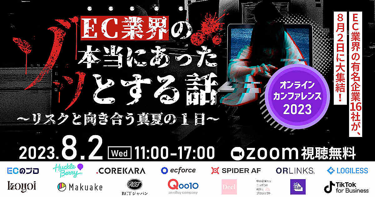 WUUZYとハックルベリーは8月2日(水)、EC・通販事業者向けに「EC業界の本当にあったゾッとする話~リスクと向き合う真夏の1日~」をオンラインで開催する。