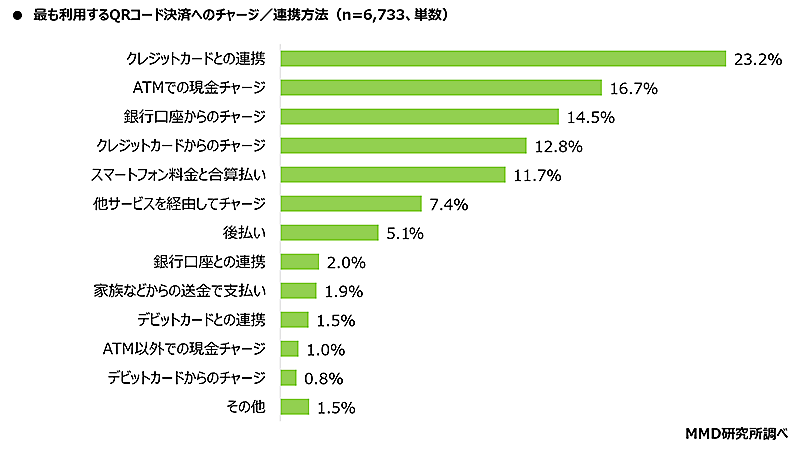 QRコード決済へのチャージ・連携方法、最多は「クレジットカード」