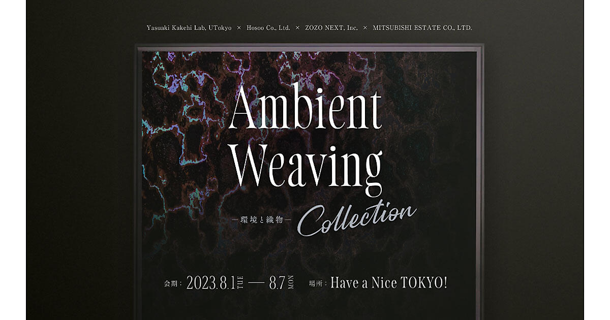 ZOZO NEXTは、東京大学と細尾による共同研究プロジェクトの作品展示会「Ambient Weaving Collection --環境と織物」を東京都・丸の内で行う。