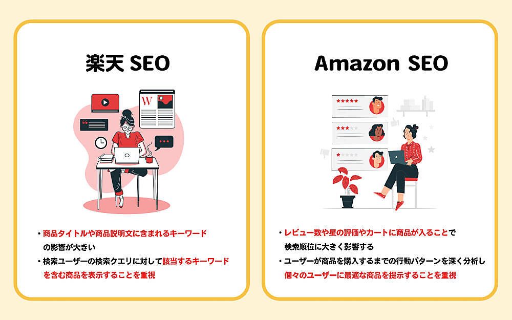 楽天SEOとAmazon SEOの大きな違いは、それぞれのプラットフォームが持つアルゴリズムにあります。
