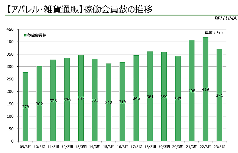 当初ベルーナでは、コロナ禍で獲得した新規顧客が定着し、コロナ禍後もアパレル・雑貨通販の規模を拡大させる目論見を抱いていた。ところが「好調だったがゆえに勘違いして強気の計画をつくってしまった。当初考えていたほどは顧客が定着してくれなかった」(安野社長)。