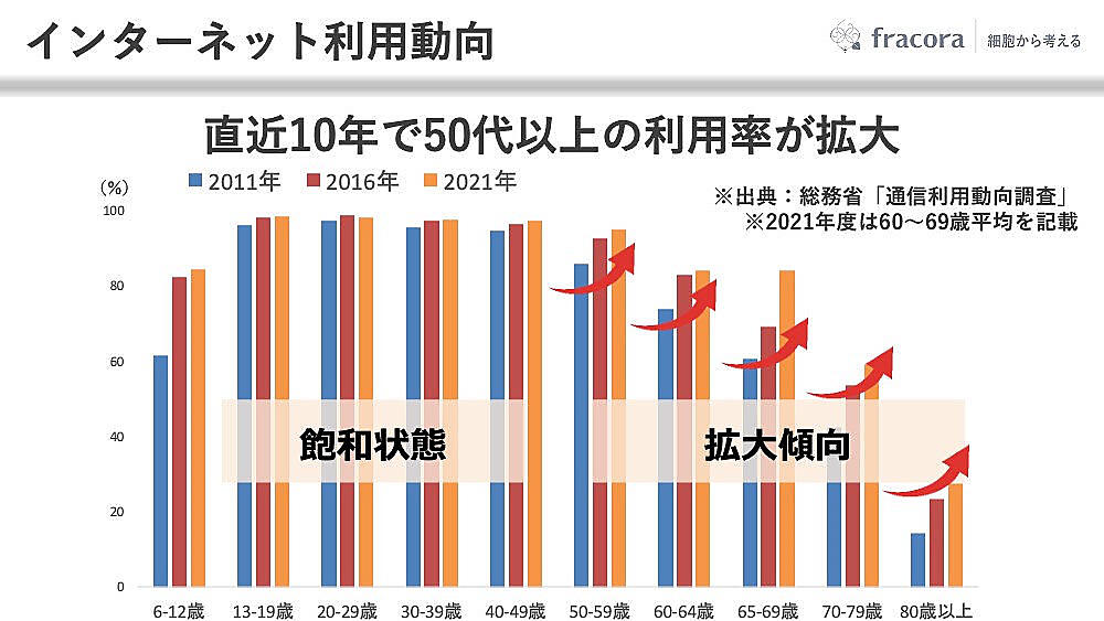 協和の変革の背景には、「フラコラ」のターゲットであるミドル層・シニア層に対するインターネットの普及・浸透がある。