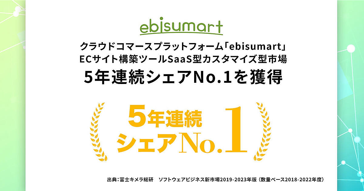 インターファクトリーによると、富士キメラ総研が発行する市場調査レポート「ソフトウェアビジネス新市場 2019-2023年版」のECサイト構築ツール SaaS型カスタマイズ型市場で、ECサイト構築パッケージ「ebisumart(エビスマート)」が5年連続シェア1位を獲得した。