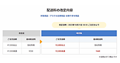 配送キャリアの送料改定を受け、「送料込み」ラインと送料を引き上げ