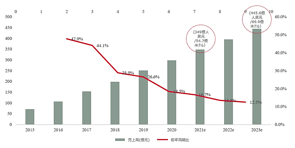 iResearchの調査データによると、中国都市部の犬・猫に関する消費市場は過去7年間で順調に成長。2023年の市場規模は445億6000万元(約9011億円)に達し、2021年から2023年の推定CAGR(年平均成長率)は14.2%と予測さています。