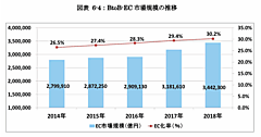 市場規模は同9.4%増の18兆2616億、EC化率は22.3%。全体の市場規模が増加したことに加え、ECによる取引が拡大したとしている。