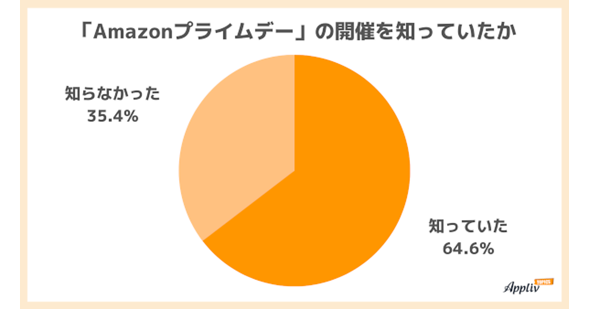 2023年7月11日~12日に「Amazonプライムデー」が実施されていたことを知っていたか質問したところ、「知っていた」は64.6%だった。