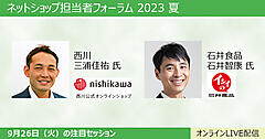 9月26日(火)・27日(水)の2日間で開催する「ネットショップ担当者フォーラム 2023 夏」では、シャボン玉石けん、Allbirds、クラダシ、西川、ファンケル、I-neなど有名企業が登壇。