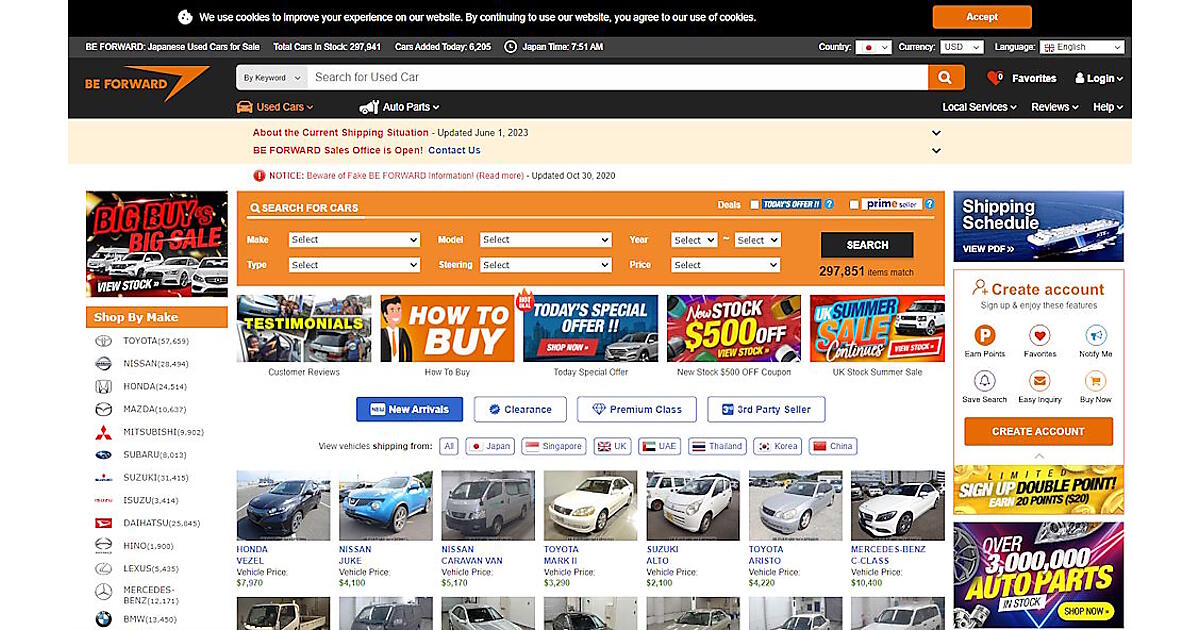中古車輸出プラットフォーム「BE FORWARD Marketplace」