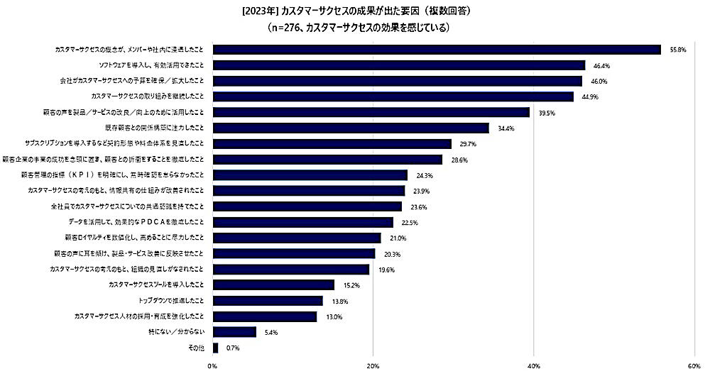 成果が出た要因、半数が「カスタマーサクセスの概念が社内に浸透していること」