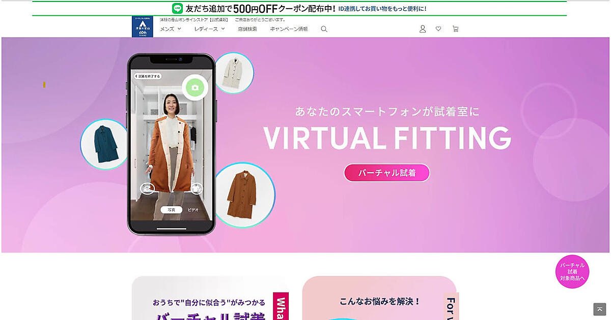 青山商事は、公式ECサイト「洋服の青山」でバーチャル試着サービスの提供を始めた。「オンライン上では商品の着用イメージがわきにくい」「自分に似合うかわからない」といった顧客の悩みを解決する。