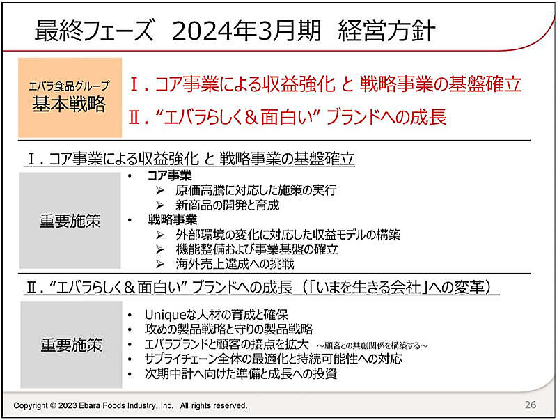 エバラ食品工業は、2024年3月期を最終年度とした中期経営計画で、基本戦略の1つに「“エバラらしく&面白い”ブランドの成長」を掲げている。