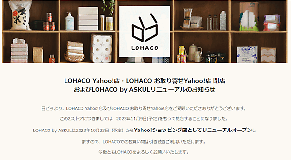 なお、10月23日にリニューアルオープンする「Yahoo!ショッピング店」のドメインは、本店の「lohaco.yahoo.co.jp」を継続利用する。