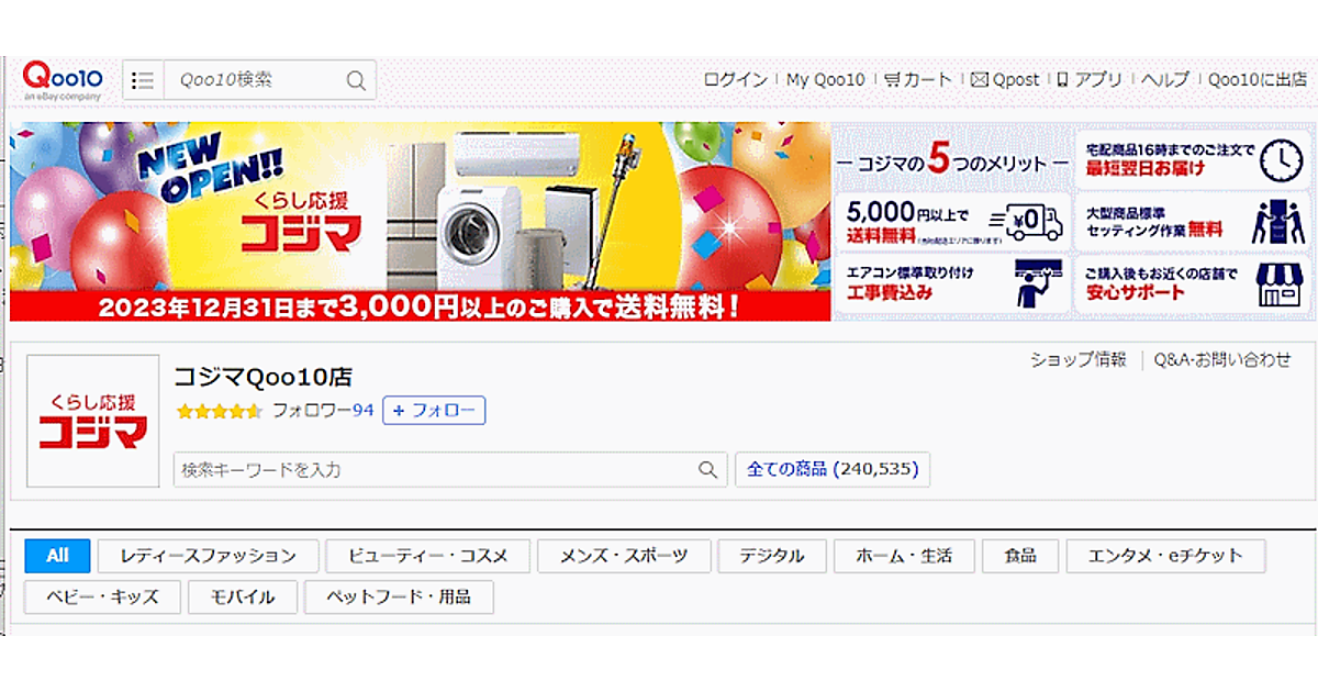 ビックカメラグループのコジマは、eBay JapanのECモール「Qoo10」に出店した。新規ECモールサイトへの出店で、新規顧客層の獲得につなげる。