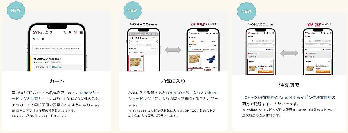 統合前は、「Yahoo!ショッピング」が発行するクーポンは、「LOHACO Yahoo!店」を利用する顧客のみに適用していた。「LOHACO」アプリには変更はない。