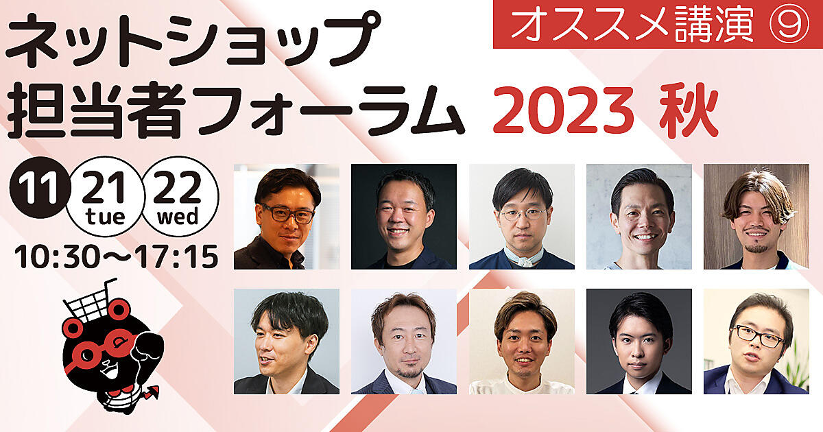 11月21日(火)・22日(水)の2日間で開催する「ネットショップ担当者フォーラム 2023 秋」は、三越伊勢丹、アダストリア、集英社、ワコール、ユナイテッドアローズ、伊藤屋、ヤッホーブルーイングといった有名企業が登壇。東京・虎ノ門ヒルズで4年ぶりにリアル開催します!