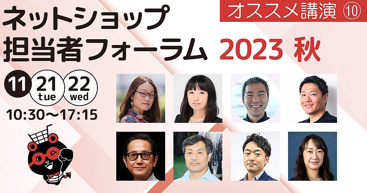 11月21日(火)・22日(水)の2日間で開催する「ネットショップ担当者フォーラム 2023 秋」(東京・虎ノ門ヒルズで4年ぶりにリアル開催)では、「EC接客のAI活用」「D2C越境EC」「使いやすいECサイト作りのコツ」「オムニチャネル戦略」などのテーマについて、企業の責任者などが講演。50を超える講演すべてを無料で聴講できます。