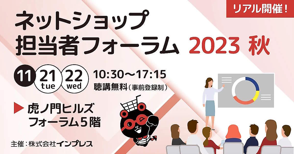「InstagramのEC活用」「ユナイテッドアローズのファン作り+OMO戦略」「越境ECで売上1000億円の事例」「メタバース起点のファンマーケ」「ワコールのCX向上戦略」などのテーマについて、企業の責任者などが講演。50を超える講演をすべて“無料”で聴講できる「ネットショップ担当者フォーラム 2023 秋」は11/22で最終日です。