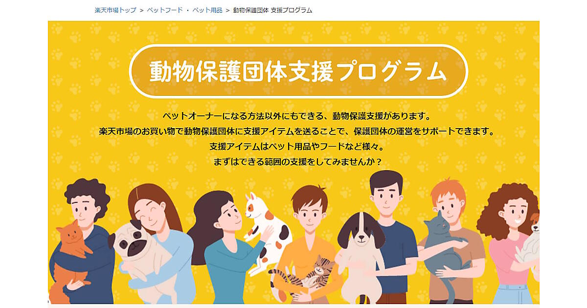 楽天グループ(楽天)は12月1日、ECモール「楽天市場」を通じて動物保護団体に物資を支援できる「動物保護団体支援プログラム」を開始した。