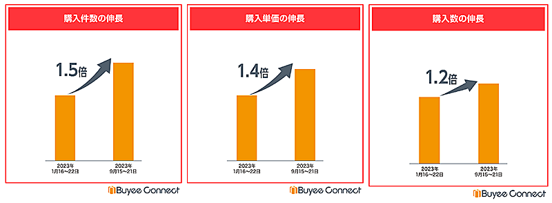 1つ目は、伸長率1位の「タレントグッズ」。そのなかでもK-POPアーティスト関連グッズが伸長、2023年1月~9月におけるトレーディングカードの購入件数が昨年同期比2.1倍となった。
