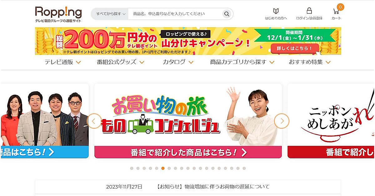 ロッピングライフの上期の総売上高は前年同期比6.8%増の82億7500万円。このうち、番組グッズなどのネット販売を含めた通販売上高は同5.5%増の80億6500万円だった。