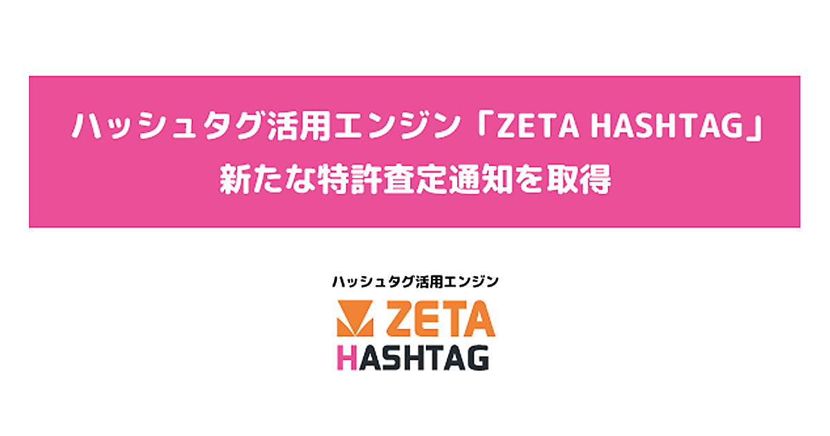 ZETAは、ハッシュタグ活用エンジン「ZETA HASHTAG」の機能において特許査定通知を取得したと発表した。