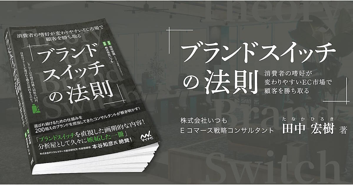 いつも.は、Eコマース戦略コンサルタントの田中宏樹氏の著書『ブランドスイッチの法則―消費者の嗜好が変わりやすいEC市場で顧客を勝ち取る』をマイナビ出版から上梓した。