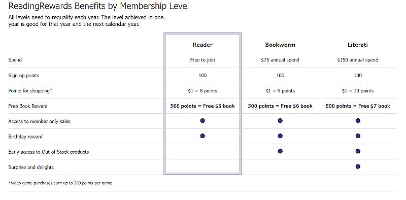 スリフトブックスには顧客との結び付きを強くするためのプログラムが他にもいくつかあります。ハーゲン氏は、会員向けプログラム「ReadingRewards」も顧客を引き付けている要素だと説明します。このプログラムは顧客を次の3つのランクに分けて構成しています。