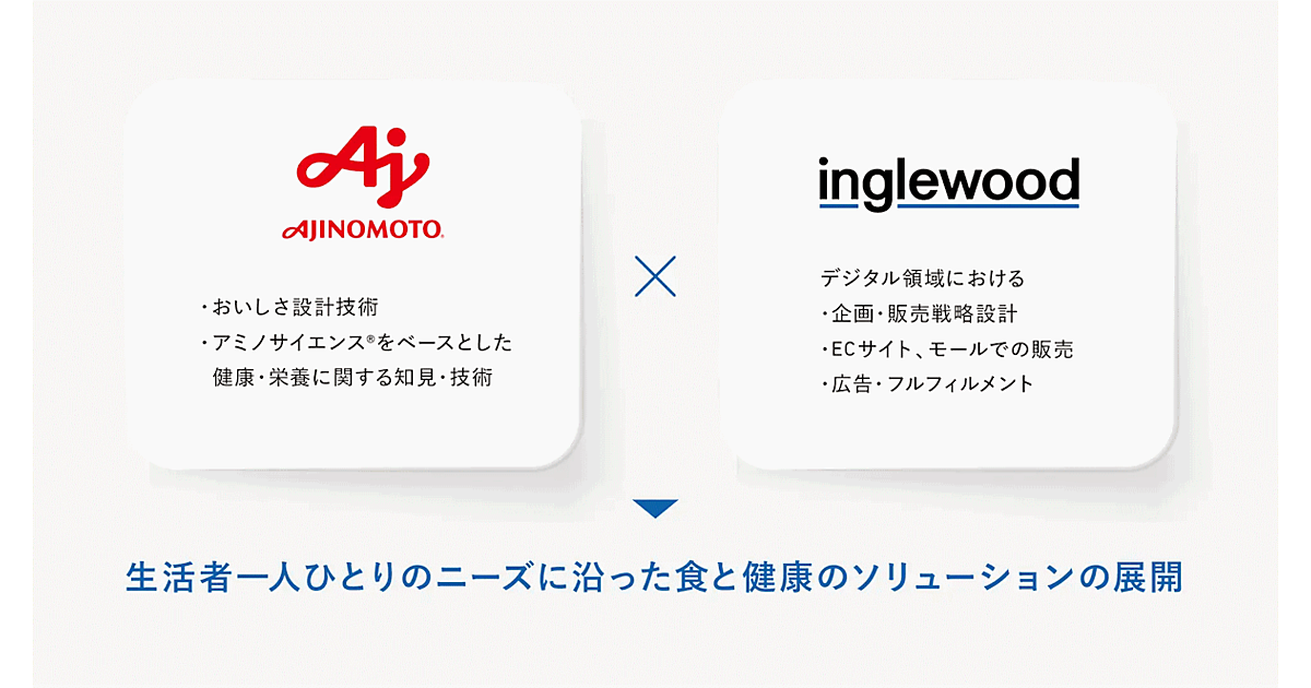 アミノサイエンスに基づいた商品開発・製造技術により生活者1人ひとりのニーズに沿ったブランド展開を進める味の素と、自らEC事業を手がけるなどEC知見が高いイングリウッドのビジネスモデルは親和性が高いと判断し、資本業務提携に至ったという。