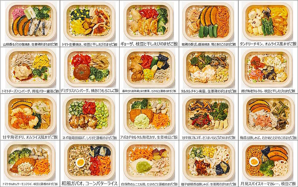 サービス名称は「あえて、」。混ぜご飯の上におかずを詰めた一食完結型の冷凍弁当で、味と栄養バランスにこだわった20種類をラインアップした。冷凍保管および紙容器のまま電子レンジで加熱できる。「多忙な毎日のなかで、食事の準備や片付けが負担になっており、時短や効率化を意識している」といった時短・効率化を求めるユーザーニーズに応える。
