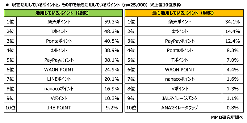 最も活用している共通ポイントは「楽天ポイント」「dポイント」「PayPayポイント」
