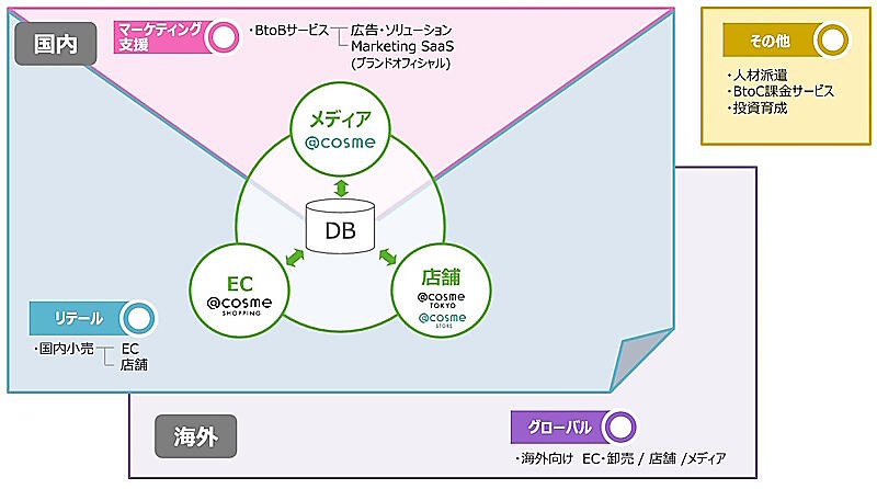 アイスタイルはコスメ・美容の総合サイト「@cosme」、ECサイト「@cosme SHOPPING」、実店舗「@cosme STORE」などオンライン・オフラインをまたぐ顧客体験を提供。BtoB向けサービスでは、生活者の化粧品購買や使用に関する行動データをベースに、化粧品ブランド向けのマーケティング支援サービスを手がけている。