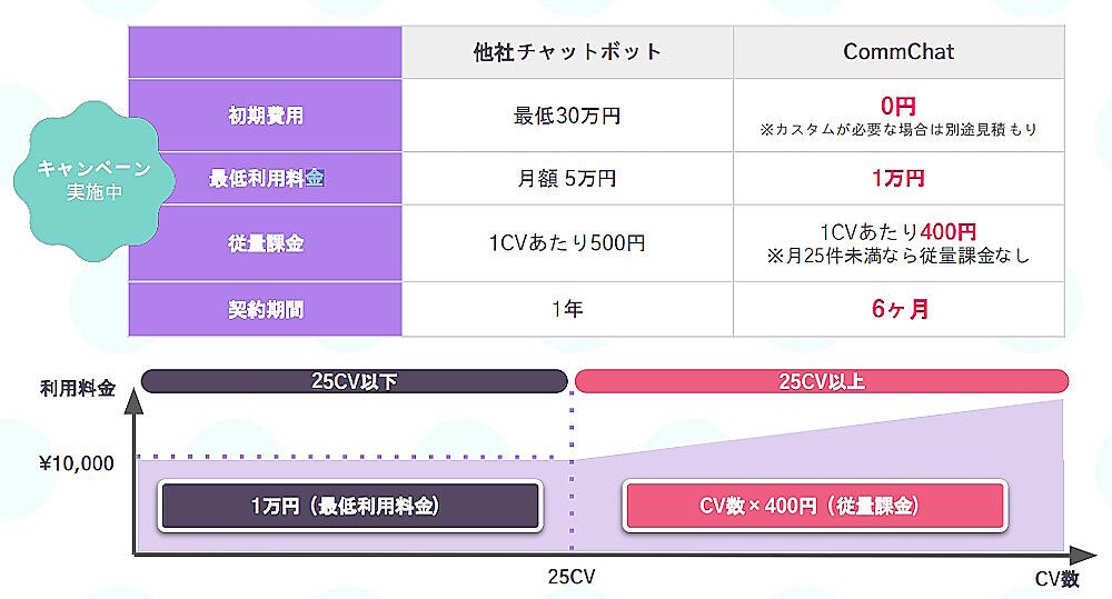 契約期間は6か月から。1CVあたり400円の従量課金制としている。最低利用料金は月額1万円。「月額最低利用料金は、リーズナブルな価格を自負しています」(須佐氏)