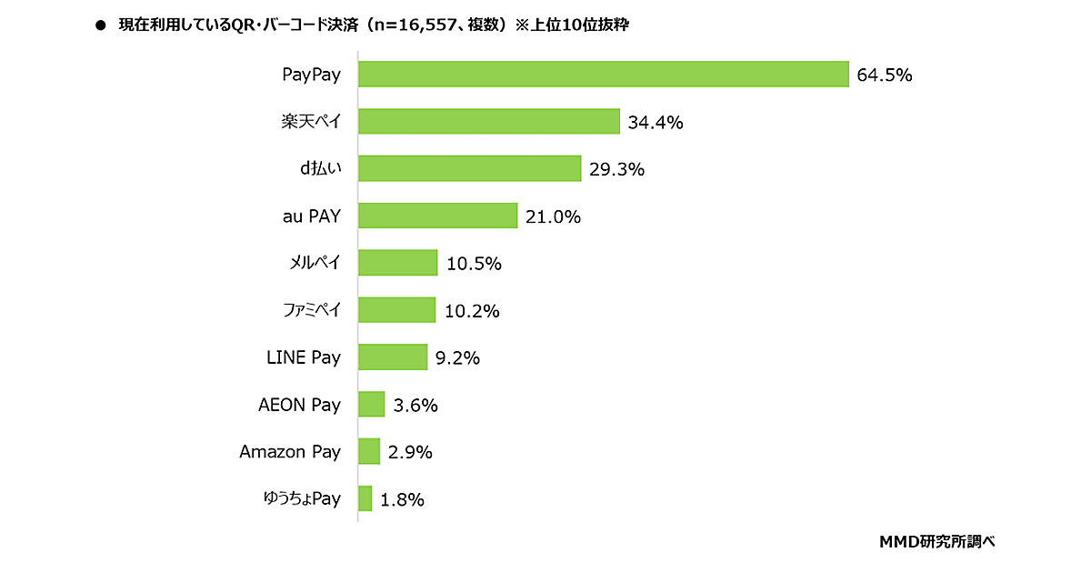 「PayPay」「楽天ペイ」「d払い」がQR・バーコード決済上位に