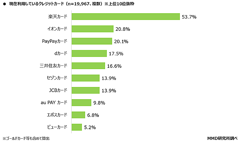 利用しているクレジットカード上位は「楽天」「イオン」「PayPay」