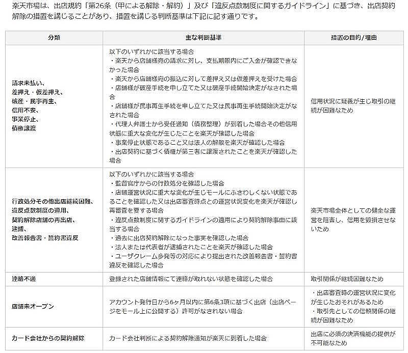 - 退店処分について例外なく理由開示・事前通知をすることとしている(楽天グループ・LINEヤフー)