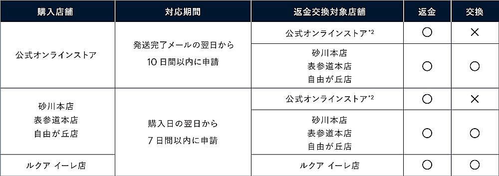 公式オンラインストアで購入した製品は返金交換対象店舗でも交換可能