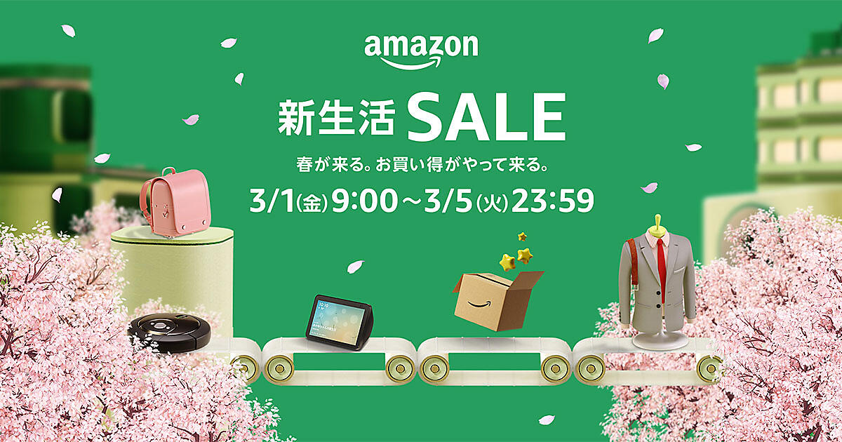 アマゾンジャパンは3月1日(金)9時00分~3月5日(火)23時59分まで、「Amazon 新生活SALE」を実施する。Amazonアカウント保有ユーザーであれば誰でも参加できる。