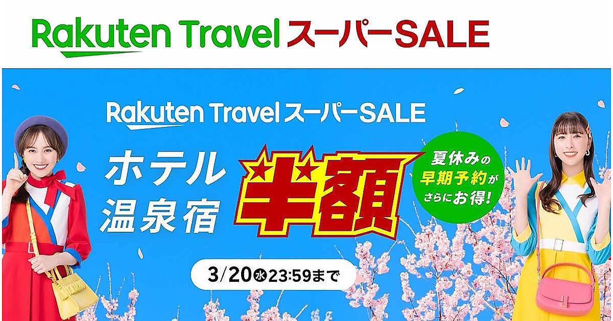 楽天グループは3月4日の20時から、「楽天トラベル スーパーSALE」を開催する。全国1万9000点以上の宿泊施設を対象としたお得な宿泊プラン、多数の割引クーポンを提供する。セール期間は3月20日の23時59分まで。