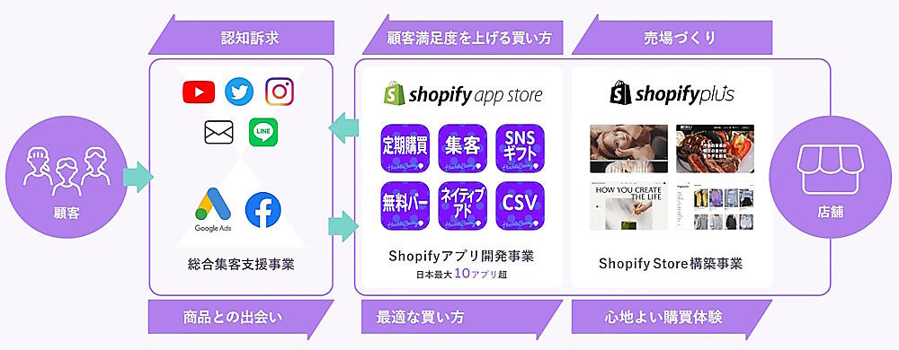 主力事業は、Shopifyが提供するECサイト構築サービス「Shopify」導入企業向けのアプリ開発とその提供。Shopifyの公式パートナー「Shopify Plus Partner(SPP。国内で限られたトップベンダーにのみ送られる認定)」の認定を受けている。
