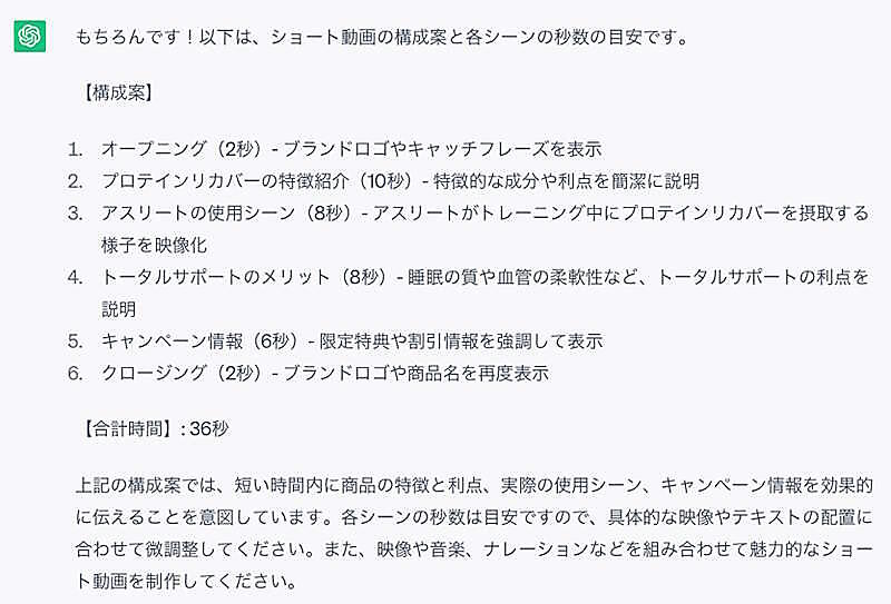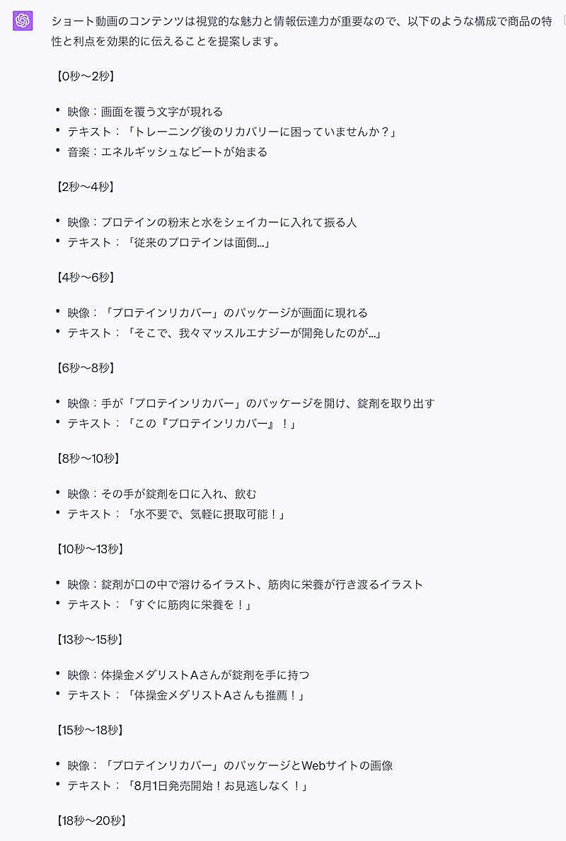 (前回からの続き)6. ショート動画の構成を提案してもらう