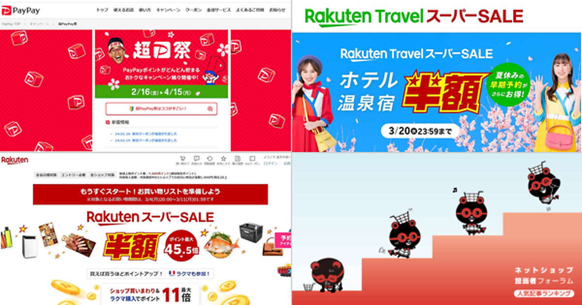 「楽天市場」の「楽天スーパーセール」は3/4の20時にスタート。「半額タイムSALE」「ポイント付与アップ」などを展開