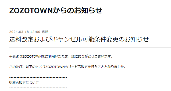 ファッションECモール「ZOZOTOWN」を運営するZOZOは4月1日、購入者から一律に徴収する送料を改定、現状の250円(税込)から330円(同)に値上げする。