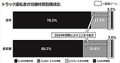 「物流2024年問題」とは、「働き方改革関連法によって、自動車運転が伴う業務の年間時間外労働時間の上限が960時間(80時間/月)に制限されることで生じる課題群」を指す。トラックドライバーに対する月間拘束時間は現状293時間だが、2024年4月から275時間に短縮される。働き方改革関連法の適用は2019年4月から始まっているが、運送業・建設業・医師への適用は2024年4月からが対象となる。
