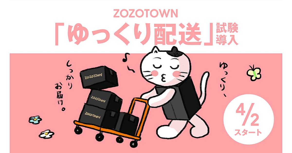 ZOZOは4月2日、ファッションECモール「ZOZOTOWN」に通常配送よりも長い発送期間を選択できる「ゆっくり配送」を試験導入する。期間は4月22日まで。