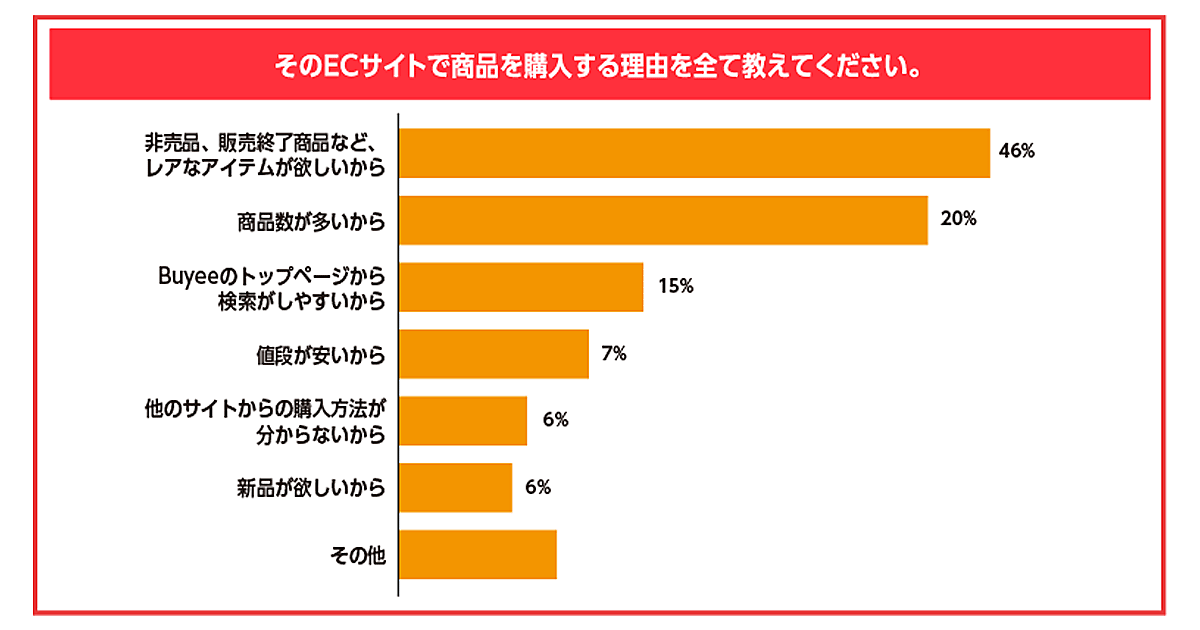 - 調査対象:2023年2月10日~2024年2月11日までに、海外向け購入サポートサービス「Buyee」を利用したユーザー(アメリカ、台湾、韓国、マレーシア、シンガポール、イギリス、フランス)