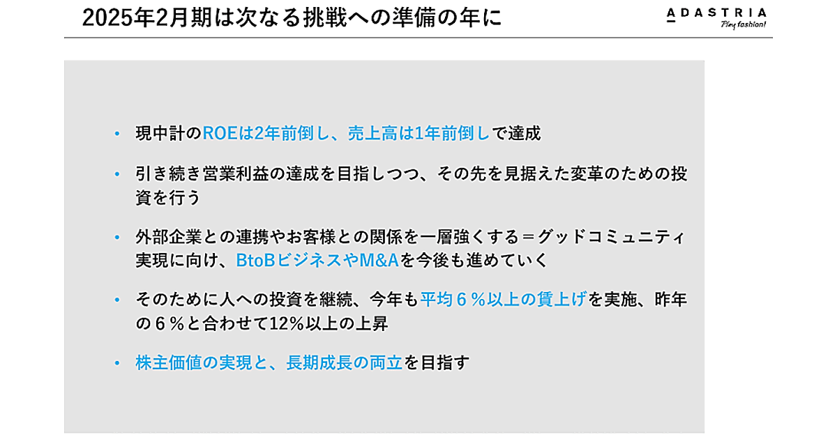 アダストリアは2025年2月期、“人”への投資を継続する。